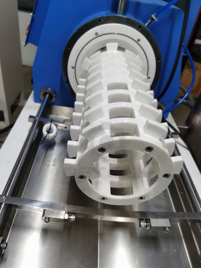 本产品采用欧洲流体研磨技术,研磨转子选用高耐磨氧化锆陶瓷材质,研磨缸体内衬选用耐磨性好、导热性好的碳化硅陶瓷材质,耐磨性好,使用寿命长;转子特制的棒销结构,效率高;密封件全部需用特种橡胶PTFE,耐溶剂。此产品广泛应用于纳米新材料、油墨、化妆品、农药、医药、陶瓷等中高档产品。
